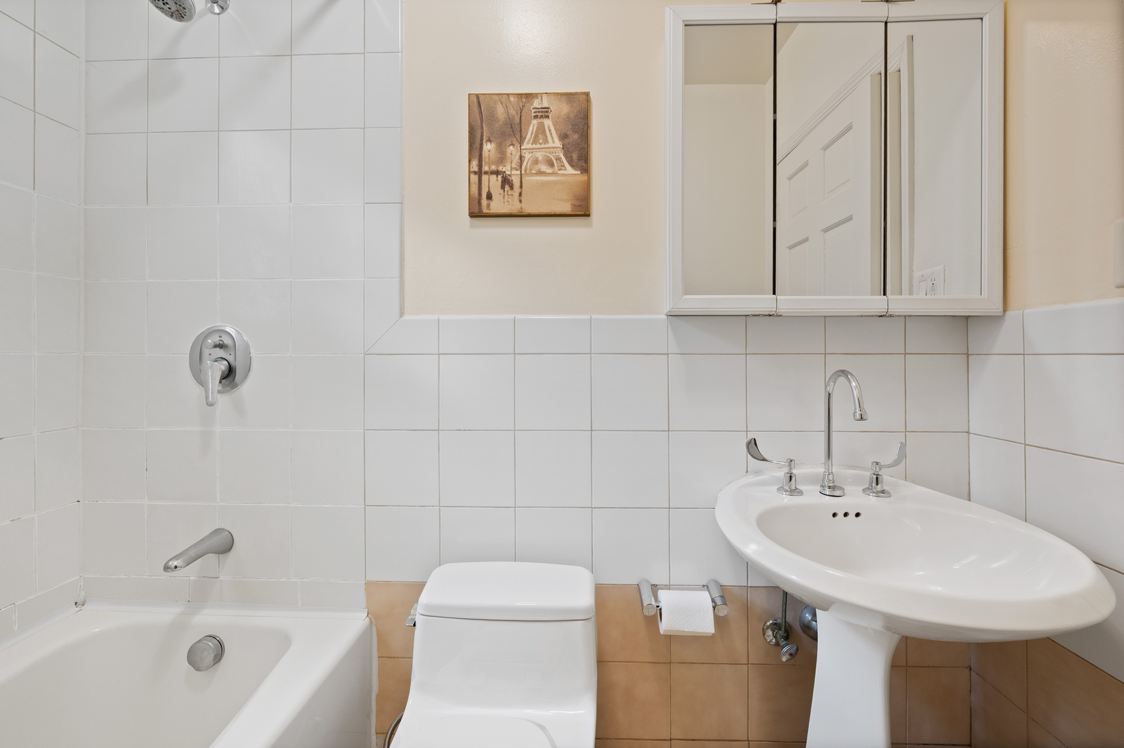 Your private bathroom features a relaxing tub-shower combo, perfect for unwinding after exploring the city.