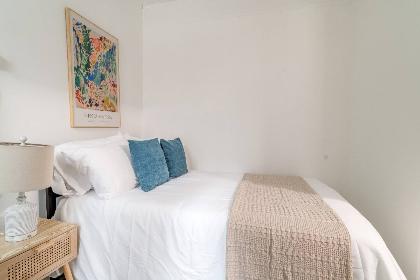 Sink into crisp white linens and wake to gentle morning light streaming through your windows in this serene bedroom retreat.