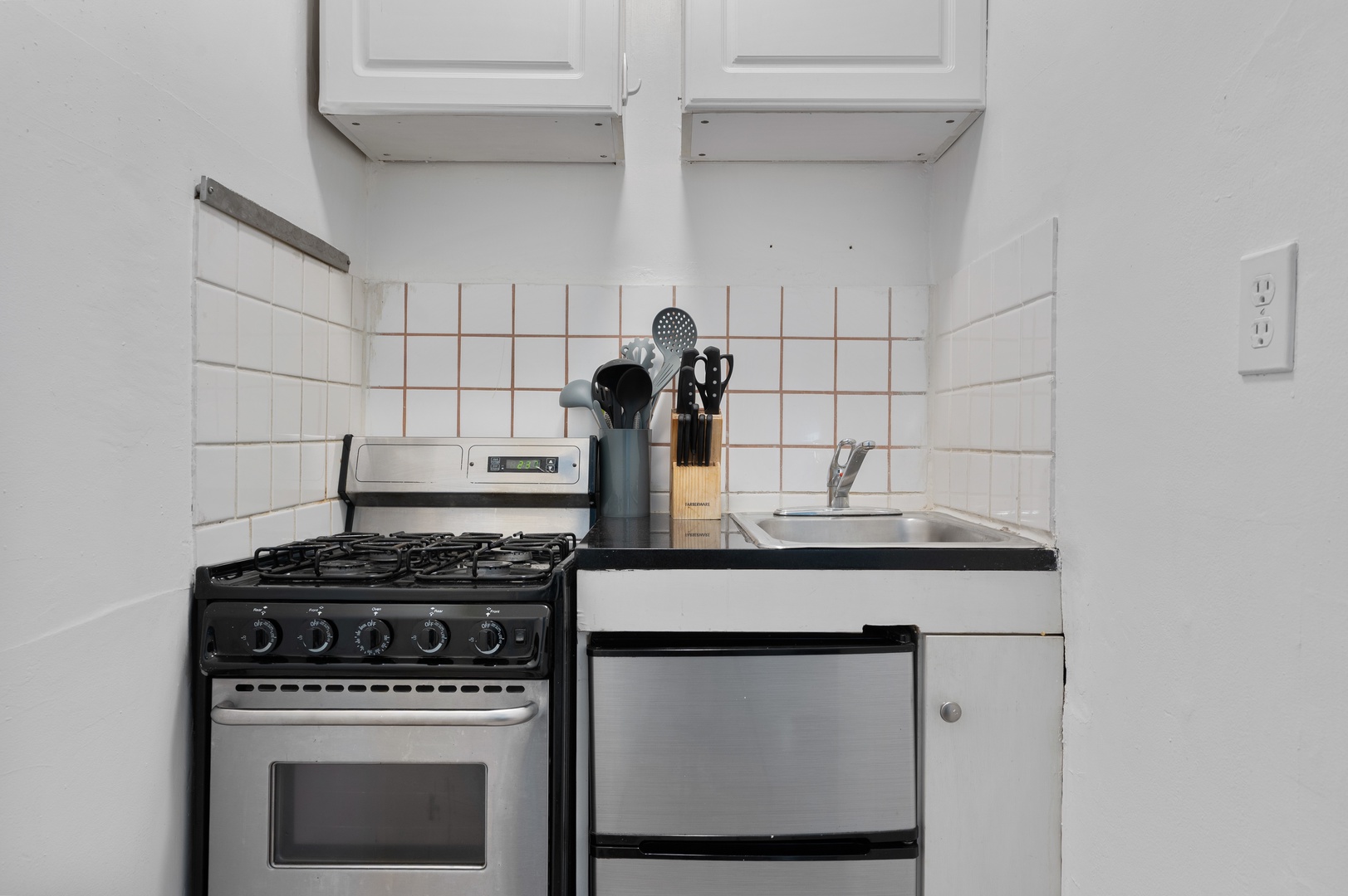 A well-appointed kitchen to whip up meals or enjoy takeout.
