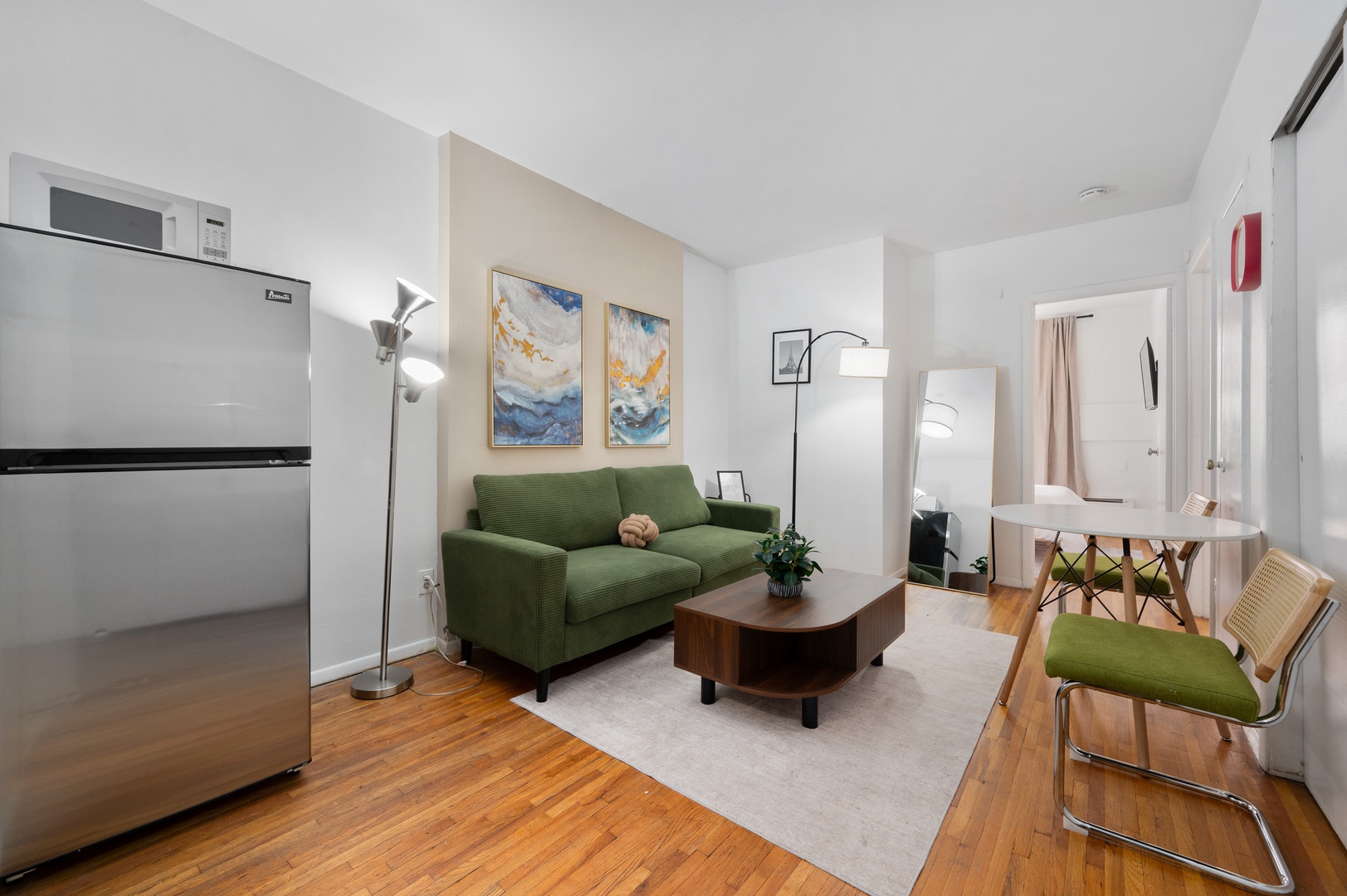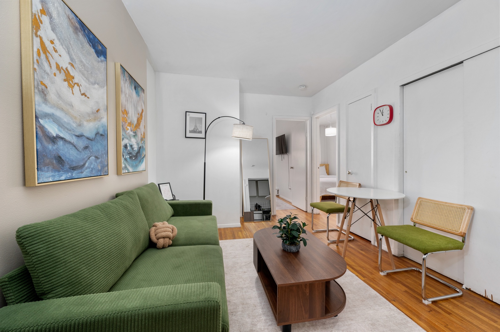 Unwind in this beautifully designed 2-bedroom Midtown apartment, where soothing blues and grays create a tranquil atmosphere amid the city's energy. Thoughtfully furnished for comfort and style, this space is perfect for families, friends, or business travelers.