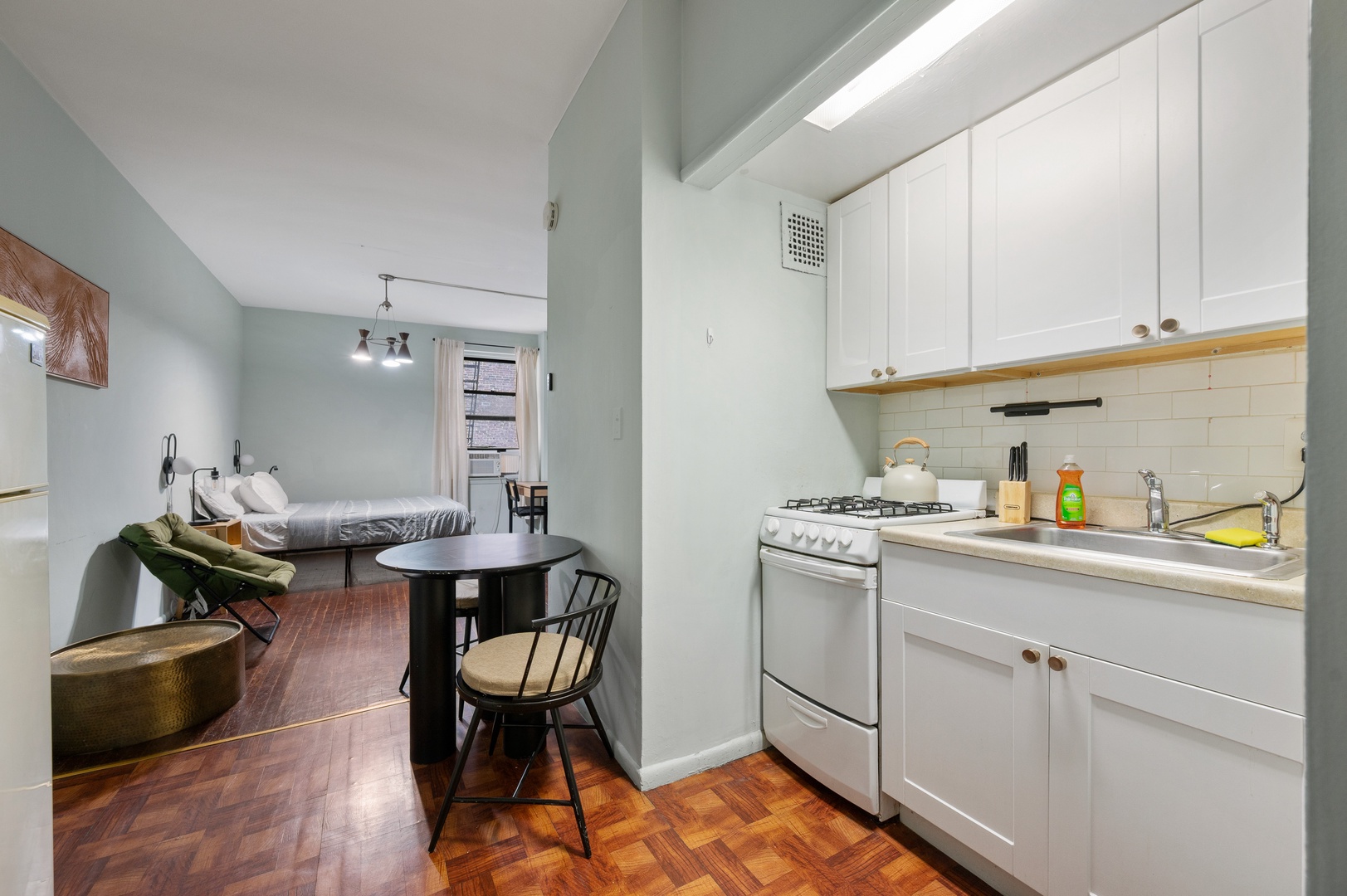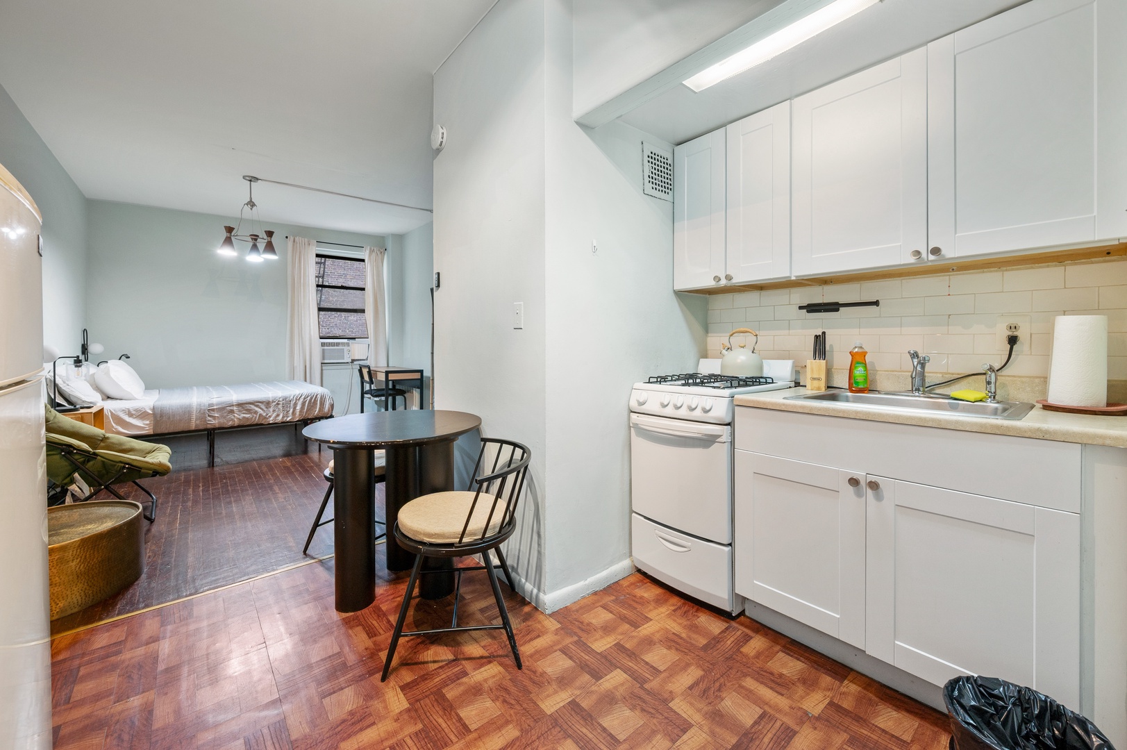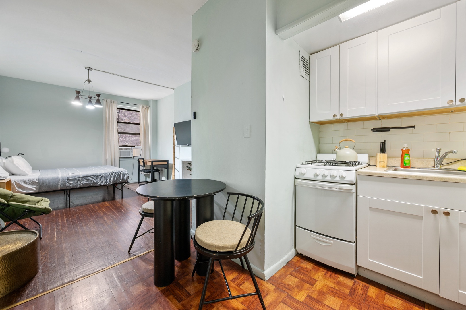 This clean and comfortable New York studio is a great fit for couples, solo travelers, or close friends looking to explore the city with ease. With a cozy queen bed, reliable WiFi, air conditioning, and a kitchen, you’ll have everything you need to relax and recharge between adventures. The space is thoughtfully set up to maximize comfort without clutter, and self check-in makes arriving on your schedule a breeze. Centrally located with easy access to transit, restaurants, and attractions, it’s the perfect spot to settle in and feel at home while enjoying everything NYC has to offer.