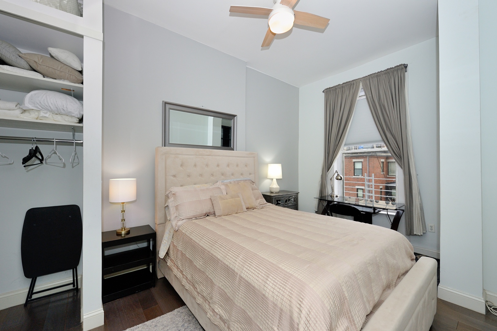 With northern exposure, enjoy abundant natural light throughout the seasons, creating an elegant ambiance. The apartment features pre-war charm with high ceilings, hardwood floors, and ample closet space, complemented by modern conveniences like WiFi, a smart TV, and quiet HVAC wall units.