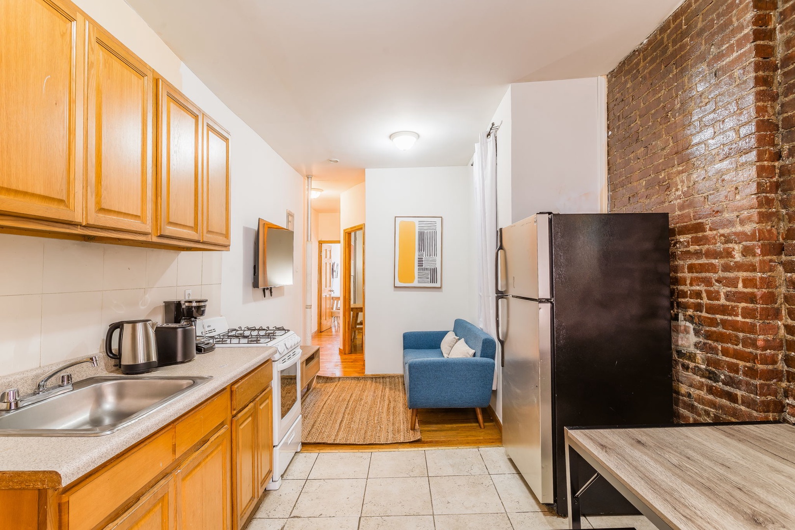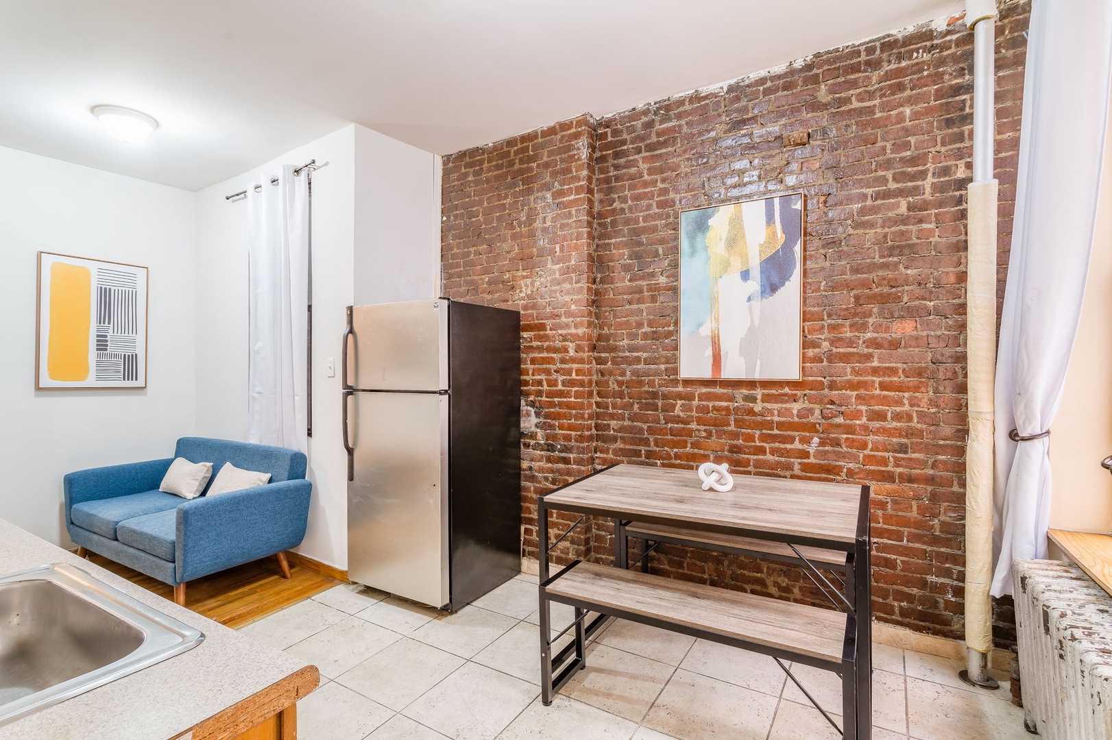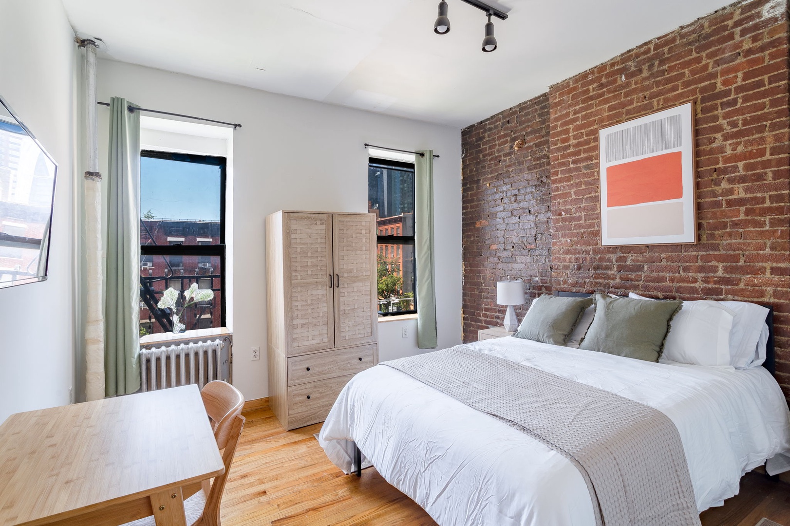 Welcome to your stylish two-bedroom retreat in Hell’s Kitchen, a vibrant neighborhood filled with dining, culture, and endless entertainment. This cozy apartment features exposed brick, beautiful wood floors, and a charming atmosphere that will make you feel at home.