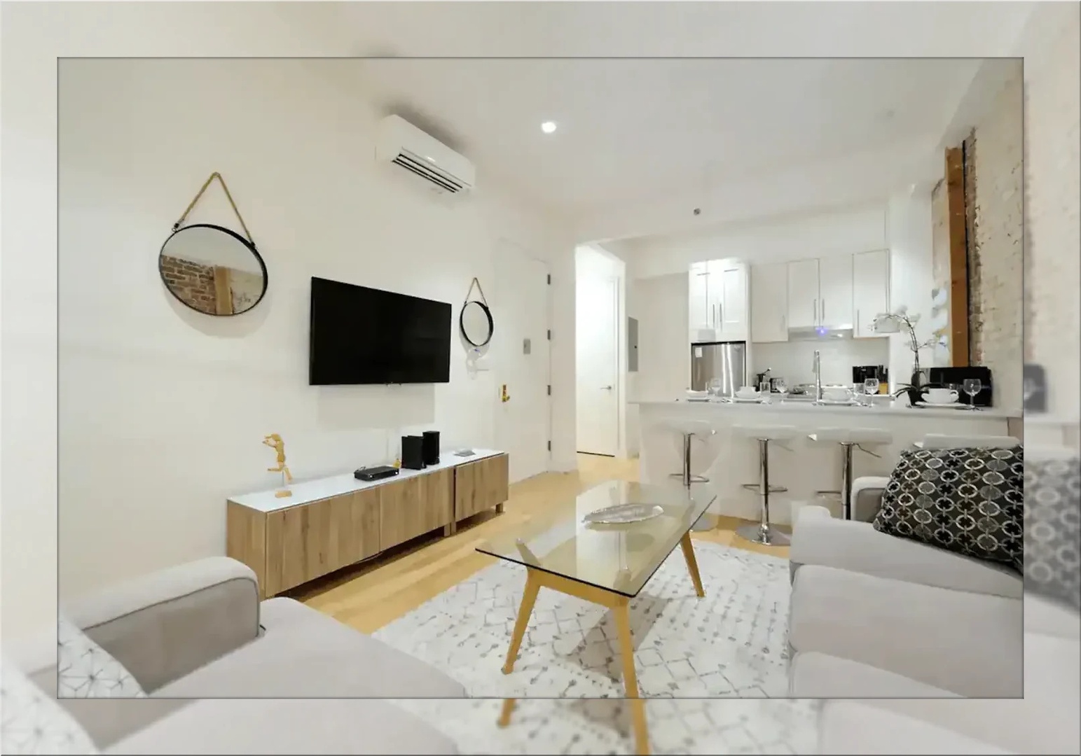 Whether you're visiting NYC with family or traveling with friends, this comfortable two-bedroom apartment puts you right in the center of the action. Located in vibrant Hell’s Kitchen, you're just steps from Broadway, Times Square, and some of the city's best eats. Inside, you'll find two cozy queen beds, fresh linens, hot water, reliable Wi-Fi, and all the basics to feel right at home—including air conditioning, heating, a TV, and a washer/dryer for added convenience. Self check-in with a lock box makes arrival a breeze, so you can settle in and start exploring. Thoughtfully furnished and well-maintained, this space is ideal for guests looking for a clean, central, and stress-free stay in Midtown Manhattan.