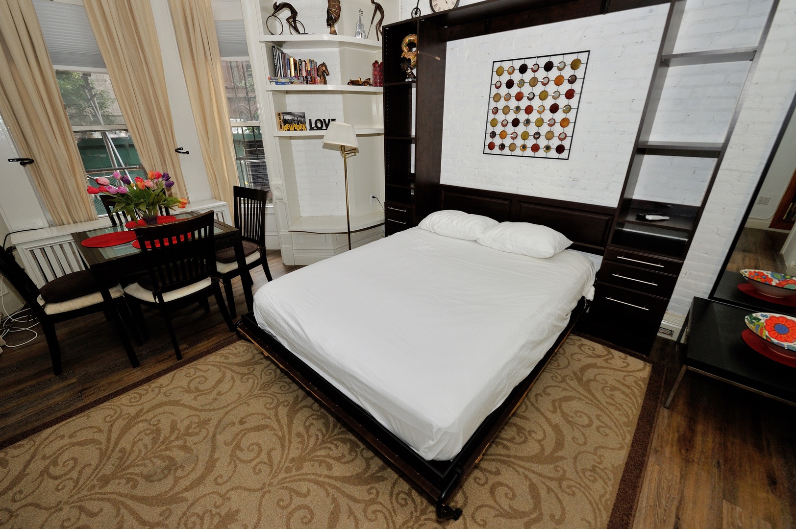 Just a few steps from Central Park and a short walk to the Museum, you’ll be surrounded by the best of what the city has to offer. This loft apartment features a queen size bed, a Murphy bed, and a futon couch, providing plenty of space for everyone to sleep comfortably.
