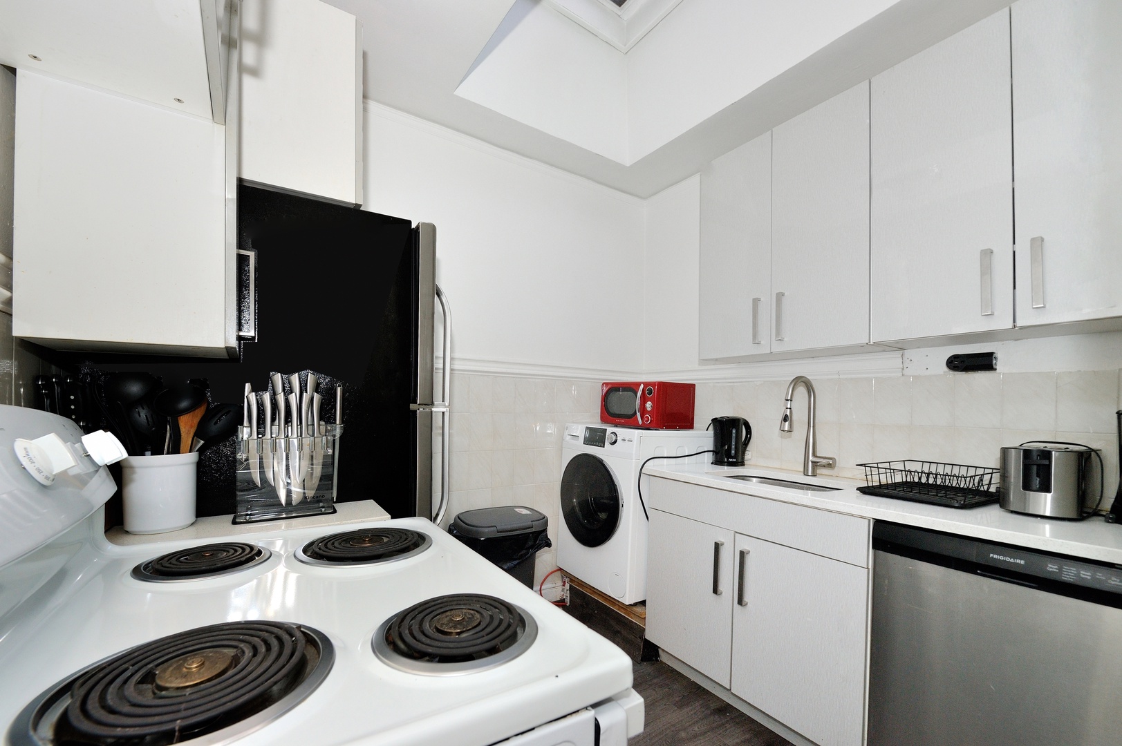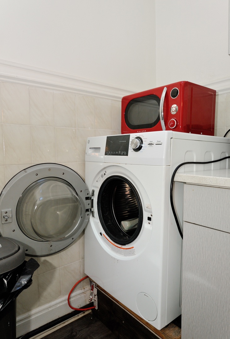 The apartment is packed with everything you need to feel right at home, including WiFi, a flat-screen TV for movie nights, and air conditioning to keep things cool during those warmer NYC days. For added convenience, you’ll have your own washer and dryer right in the unit—no more running to the laundromat!