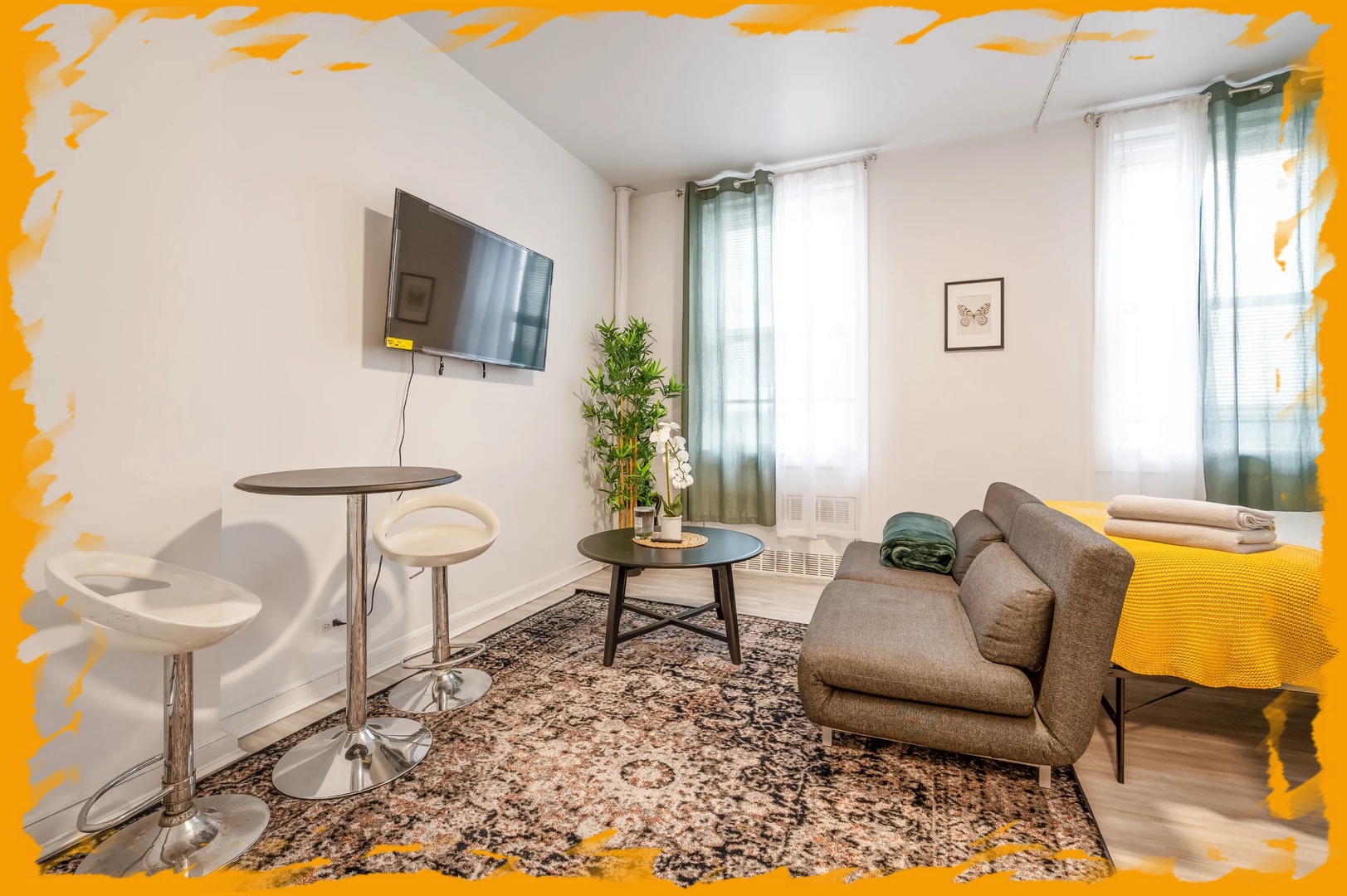 Welcome to your perfect Midtown studio retreat! This beautifully updated and thoughtfully decorated space offers everything you need for a comfortable and convenient stay. The studio features modern amenities such as WiFi, a flat-screen TV, and air conditioning to keep you connected and comfortable during your visit.
